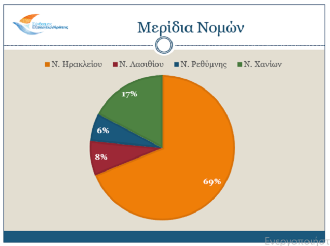 Όσον αφορά στους Νομούς και για την ίδια περίοδο, οι εξαγωγές από το Ν. Ηρακλείου, το Ν. Λασιθίου και το Ν. Χανίων αυξήθηκαν κατά 44,5%, 32,6% και 13,2% αντίστοιχα, ενώ ο Ν. Ρεθύμνης είναι ο μοναδικός που παρουσίασε μικρή μείωση της τάξεως του 2,7%.