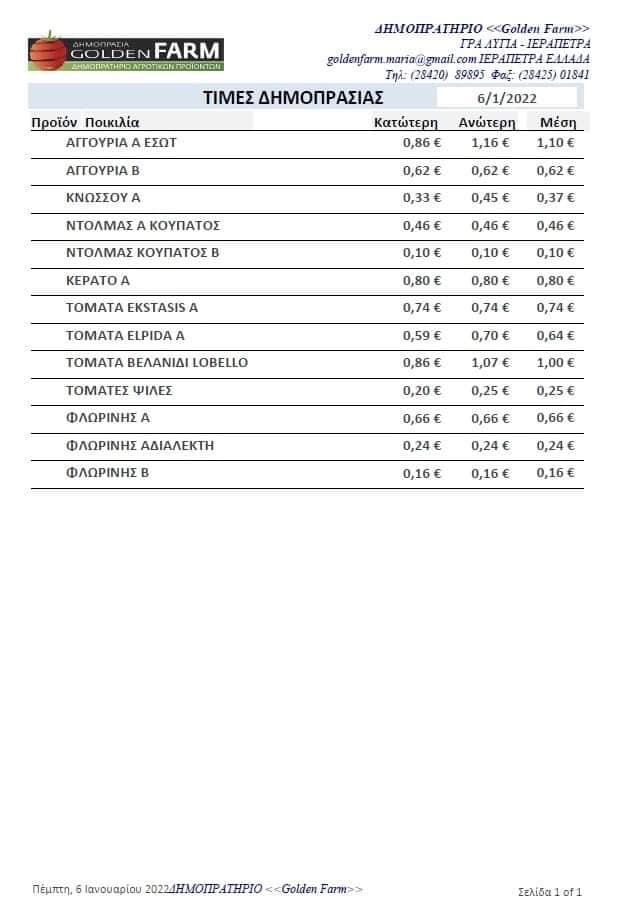 7 Ιανουαρίου 2022 ΓεωργίαΚρήτηΗρακλειοΛασιθιΡεθυμνοΧανιαΠροϊόντα Ανεβαίνουν οι τιμές σε αγγούρι και ντομάτα FacebookTwitterPinterestWhatsApp Πάνω από 1 ευρώ στην τελευταία δημοπρασία. agrocretanews Σχετικά Άρθρα Ημερίδα «Γνώση» – Πέμπτη 30 Απριλίου Ημερίδα «Γνώση» - Πέμπτη 30 Απριλίου Κτίριο ΕΛΓΟ (πρώην ΕΘΙΑΓΕ) Ο Σύνδεσμος Βιοκαλλιεργητών Θεσσαλίας (ΣΒΘ) σε συνεργασία με... 28 Απριλίου 2026 Λασίθι: Η «χρυσή» βροχή έσωσε την ελαιοκομία – Η φύση «ξύπνησε» μετά από τρία χρόνια ξηρασίας! Μετά από τρία χρόνια ξηρασίας, οι ουρανοί άνοιξαν στην Ανατολική Κρήτη, με το Σελάκανο... 28 Απριλίου 2026 Σχοινάς για ΟΠΕΚΕΠΕ: Υπάρχει συμφωνημένο σχέδιο μετάβασης στη νέα Αρχή – Οι πληρωμές δεν θα διακοπούν Συνεδριάζει στο Λουξεμβούργο το Συμβούλιο Γεωργίας και Αλιείας, με την πρώτη συμμετοχή του Μαργαρίτη... 28 Απριλίου 2026 ΑΑΔΕ: Ψηφιακή βεβαίωση δραστηριοτήτων για τη μετάβαση στους νέους ΚΑΔ – Ειδικές κατηγορίες στο Μητρώο για πωλητές σε υπαίθριες αγορές και πωλήσεις online Η προσαρμογή του Φορολογικού Μητρώου στα νέα ευρωπαϊκά πρότυπα ταξινόμησης (NACE Αναθ. 2.1 και... 27 Απριλίου 2026 Σύσκεψη στη Λέσβο για την αντιμετώπιση του αφθώδους πυρετού και την οικονομική στήριξη στους πληγέντες «Κανένα περιθώριο για λάθος, αυστηρή τήρηση των μέτρων» το μήνυμα του ΓΓ ΥΠΑΑΤ για... 27 Απριλίου 2026 Πρόσφατα άρθρα Ημερίδα «Γνώση» – Πέμπτη 30 Απριλίου Λασίθι: Η «χρυσή» βροχή έσωσε την ελαιοκομία – Η φύση «ξύπνησε» μετά από τρία χρόνια ξηρασίας! Σχοινάς για ΟΠΕΚΕΠΕ: Υπάρχει συμφωνημένο σχέδιο μετάβασης στη νέα Αρχή – Οι πληρωμές δεν θα διακοπούν ΑΑΔΕ: Ψηφιακή βεβαίωση δραστηριοτήτων για τη μετάβαση στους νέους ΚΑΔ – Ειδικές κατηγορίες στο Μητρώο για πωλητές σε υπαίθριες αγορές και πωλήσεις online Σύσκεψη στη Λέσβο για την αντιμετώπιση του αφθώδους πυρετού και την οικονομική στήριξη στους πληγέντες ΑΦΗΣΤΕ ΜΙΑ ΑΠΑΝΤΗΣΗ Ακύρωση απάντησης Σχόλιο: εισάγετε το σχόλιό σας! Όνομα:* παρακαλώ εισάγετε το όνομά σας εδώ Email:* έχετε εισάγει εσφαλμένη διεύθυνση ηλεκτρονικού ταχυδρομείου! παρακαλώ εισάγετε εδώ την ηλεκτρονική σας διεύθυνση Ιστοσελίδα: αποθηκεύστε το όνομα, το ηλεκτρονικό ταχυδρομείο και τον ιστότοπό μου σε αυτό το πρόγραμμα περιήγησης για την επόμενη φορά που θα σχολιάσω.
