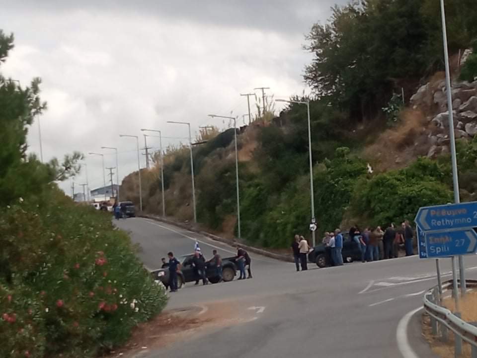 Απέκλεισαν τον κόμβο στα Τρία Μοναστήρια στο Ρέθυμνο για να διαμαρτυρηθούν για τα προβλήματά τους.
